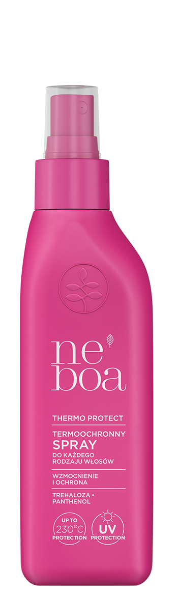 Neboa Thermo Protect to lekki spray, który skutecznie chroni włosy przed wysoką temperaturą (do 230°C) oraz promieniowaniem UV. Formuła wzbogacona o olej arganowy, aminokwasy i proteiny z groszku wygładza włosy, niweluje puszenie i ułatwia stylizację. Nie obciąża pasm, pozostawiając je miękkie, lśniące i pełne blasku.